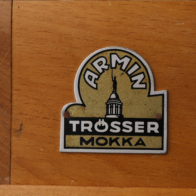 about(cm)高 20幅 8.5奥 12ハンドル 10この鉄と木のバランスが絶妙でロゴのプレートがまた可愛い。細かな気が利いた木の細工をじっくりとご覧ください。