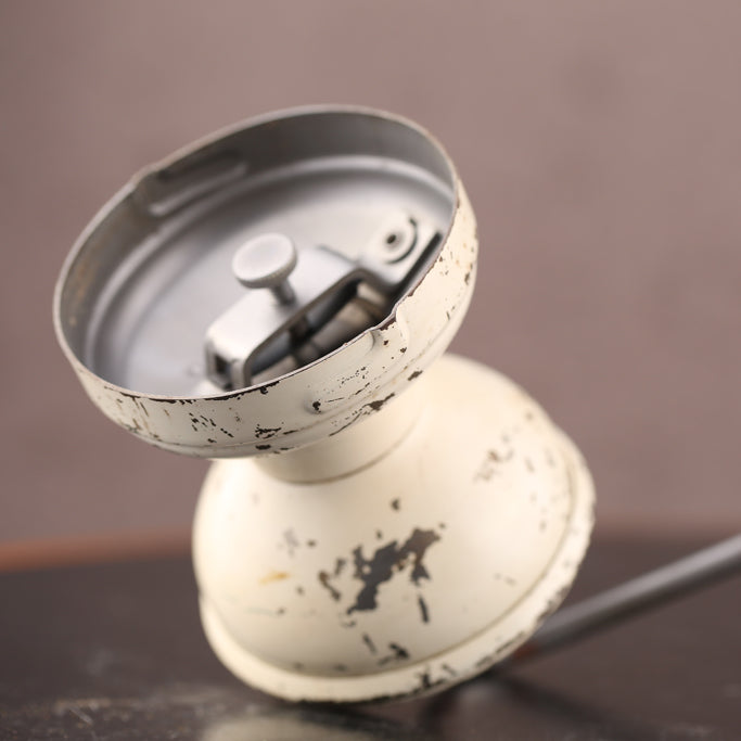こちらプジョーの鉄製珈琲ミル、ディアボロ。このコンパクトさと頑丈さが格好いい。棚の上での存在感は抜群で、